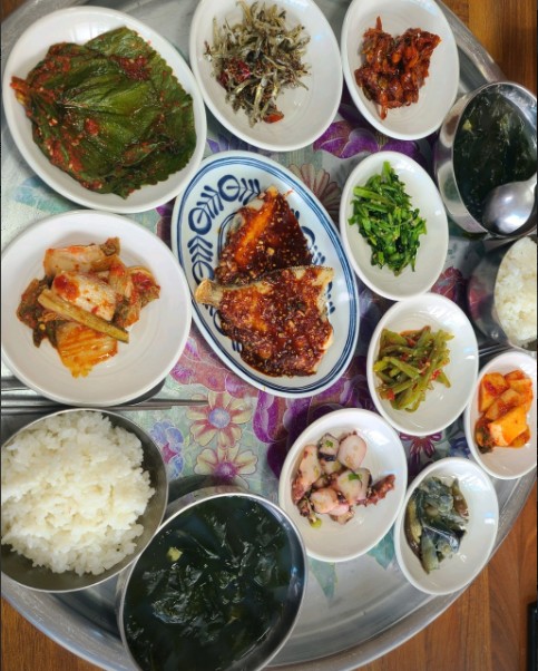 마지막 거제도 맛집은 저구항 근처에 위치하고 있는 50년 전통 백반 전문점 바다식당입니다. 식객 허영만의 백반기행에 소개되었던 거제 백반 맛집으로 1인 8천원에 나오는 백반 정식의 평이 좋은 로컬 식당인데요. 구수한 시래기 된장국과 가자미구이에 10여 가지 반찬이 정갈하게 잘 나와서 가성비 좋은 백반으로 점심 식사하기 좋은 거제 현지인 맛집입니다.