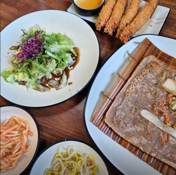 이어지는 공주 동학사 맛집은 매콤한 쭈꾸미 볶음 정식세트를 전문으로 하는 주꾸미 전문점 홍기와쭈꾸미입니다. 1인 기준 12,000원의 정식 세트 주문 시 메인 주꾸미 볶음에 샐러드와 묵사발 그리고 도토리전이 함께 나오는 정식이 유명한 곳인데요. 넓고 아늑한 한옥 인테리어에 매콤한 주꾸미 볶음과 바삭한 왕새우튀김까지 같이 드시기 좋은 동학사 현지인 맛집입니다.