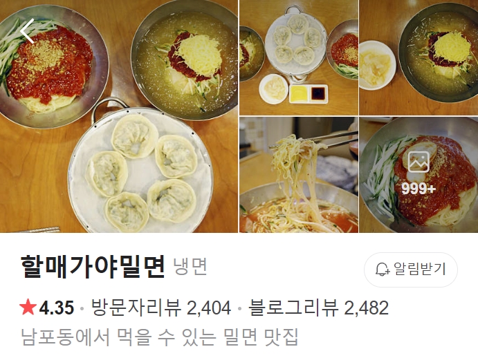 - 할매가야밀면(네이버 12위, 구글 26위, 다음 4위)